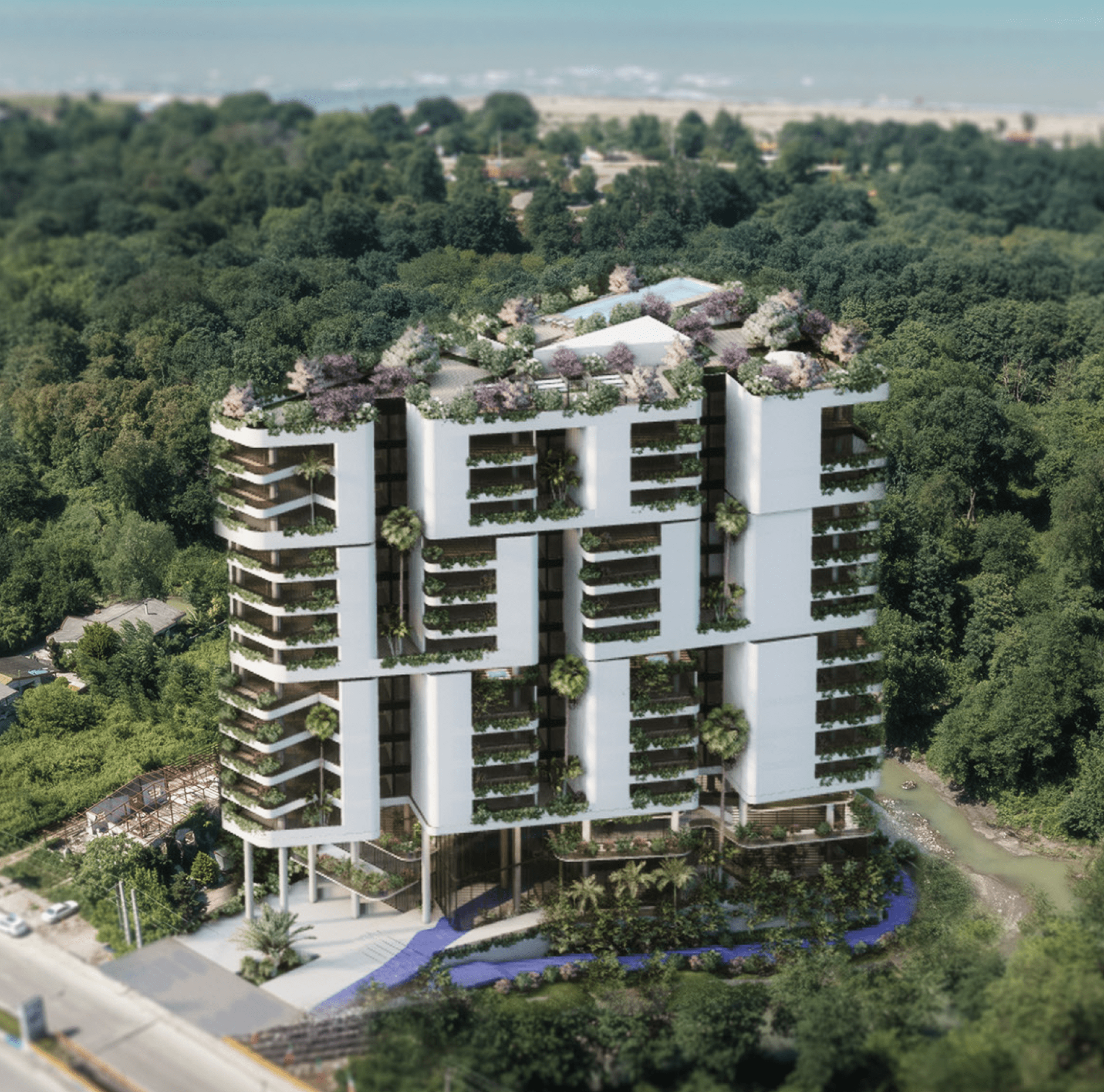 The Garden Plaza project is located in a special geographical location. The pristine location, in the vicinity of a River, as well as the geometry of the land, have set unique features for the design of the project. Considering the specific geometry of the land, directing light to the main spaces, providing a view and minimal overlap of the units, the volume of the project was formed by placing successive voids in the external body. In the following, corridors have been considered for the public spaces of the project, due to which air ventilation can be done properly in the humid climate of the north of the country.